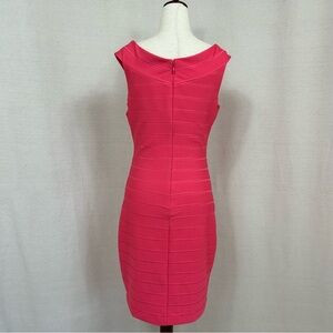 Guess Pink Ribbed Cowl Neck Sheath Midi Dress