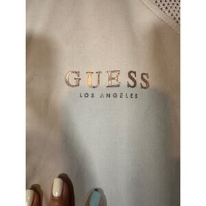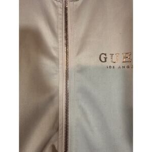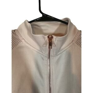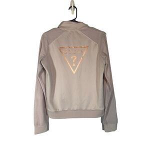 Guess Pink & Rose Gold Logo Long Sleeve Mock Neck Full Zip Jacket Women Sz M