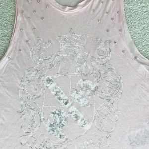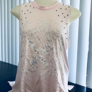 Guess Pink Sleeveless Rhinestone Embellished Top