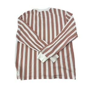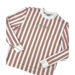 Guess Pink Striped Long Sleeve Crew Neck Shirt Embroidered Guess Logo Women's M
