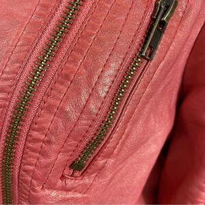 Guess Pink/Red Faux Leather Moto Jacket with Asymmetrical Zipper Size Small