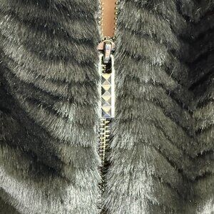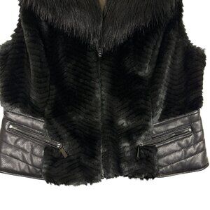 Guess Piper Women's Faux Fur Vegan Leather Vest XL Black Full Zip Pockets