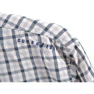 Guess Plaid Long Sleeve Button Up Shirt XL Beige‎ Blue