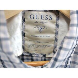 Guess Plaid Long Sleeve Button Up Shirt XL Beige Blue