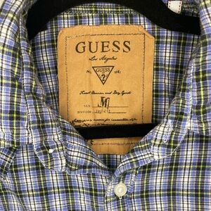 Guess Plaid Western Black Blue Green Button Up Cotton Shirt Long Sleeve