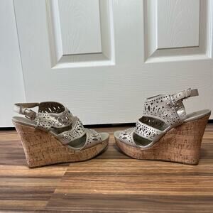 Guess Platform Sandals Cork Wedge Open Toe Perforated Cut-Out