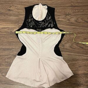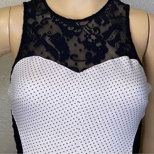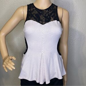 Guess Polkadot Peplum Sleeveless Blouse Pink With Black Lace Detail Size XSmall