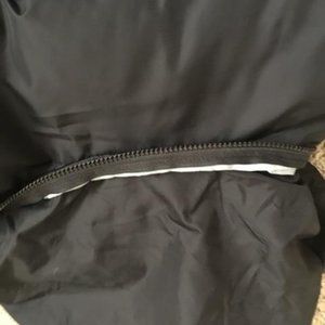 Black Guess Puffer jacket/coat size large with multiple pockets, zippers, removable hood, ties and sleeve inserts