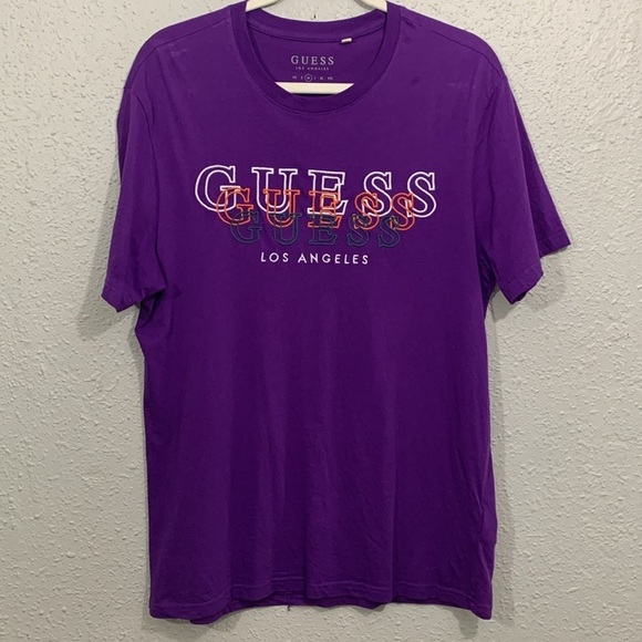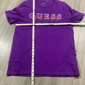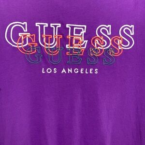 Guess Purple Embroidered SpellOut Crew Neck Short Sleeve T-Shirt size M