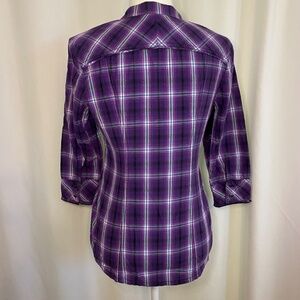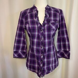 Guess Purple Plaid Button Down Shirt 3/4 Sleeve M