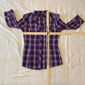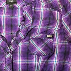 Guess Purple Plaid Shirt With Silver Metallic Stitching