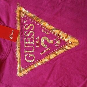 Guess Purple T-Shirt with Gold Logo