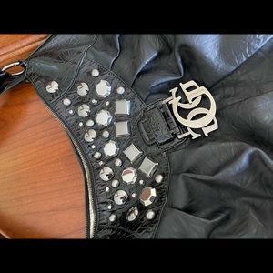 Guess slouchy bag with rhinestones detail on outside, wide straps, a zipper pocket, and three other pockets inside. Great condition!
