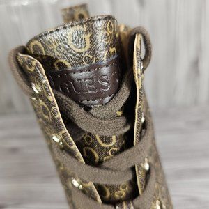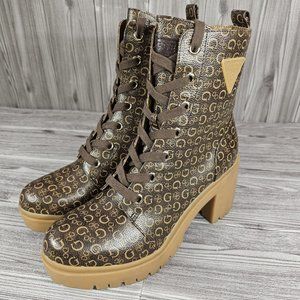 Guess Quincy 3 Logo Heeled Boots - Brown/Tan - DSLRT06K - Women's Size 9.5 NEW