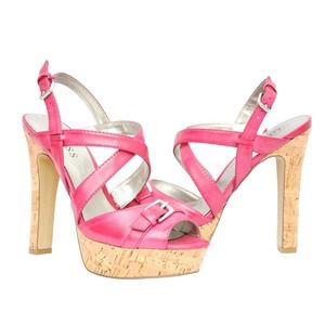 Guess RYANN Strappy Cork Platform Pump Sandal High Heel Pink 8.5/9.5/10 New