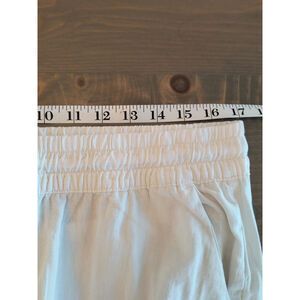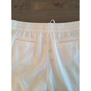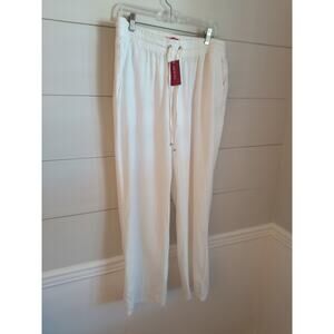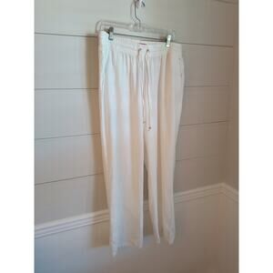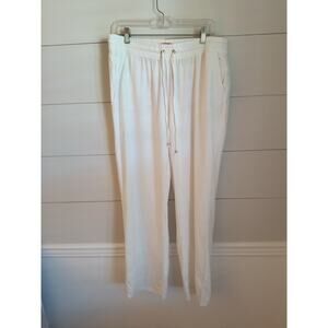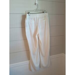 Guess Reagan Linen Pant Women's Size L White Elastic Waist Wide Leg Pockets