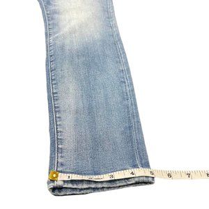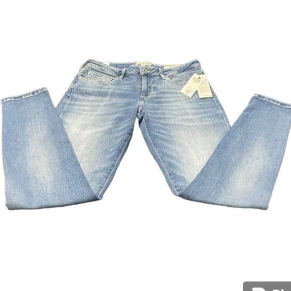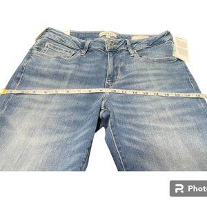 This is a high-quality, new with tags pair of jeans in medium to light wash. Low-rise.