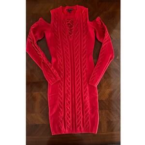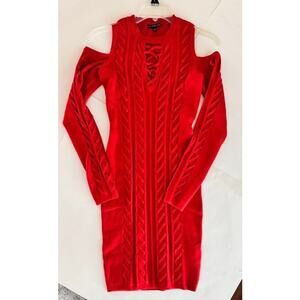 Guess Red Cold Shoulder Sweater Dress | Lace-Up Front Bodycon Knit | Size M