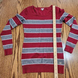 Guess Red Grey Silver Striped Sweater Small Party Dressy Wear