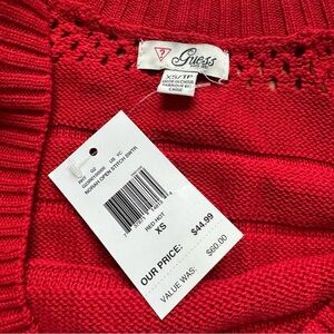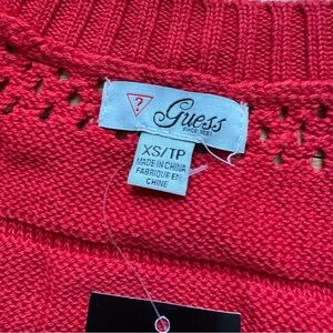 Guess Red Hot Knit Sweater Norah Open Stitch Short Sleeve Boat neck XS NWT