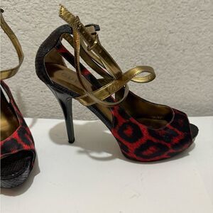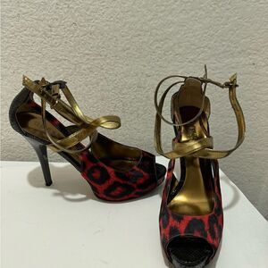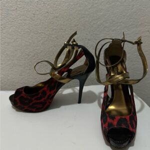 Guess Red Leopard Print Patent Leather High Heels