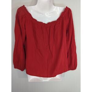 Guess Red Linen Blend Off The Shoulder Top - Size M - Button Casual Long Sleeve