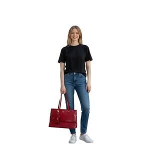 Elevate your style with this bold Guess red faux leather tote bag featuring a chic snake print finish. Designed with double shoulder straps for comfort and a spacious interior, this bag is perfect for everyday use, work, travel, or shopping. Comes with a matching detachable Guess pouch for coins, cards, or small essentials.