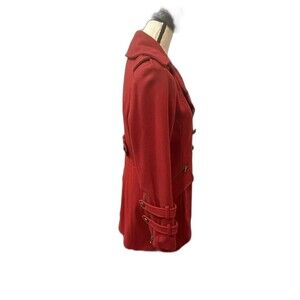Guess Red Wool Blend Military Peacoat Jacket Double Breasted Belted Medium NEW