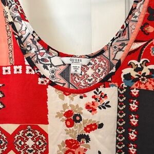 Chic tank top with a striking red and black pattern. Ideal for a bold look.