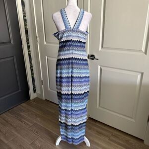 Guess Resortwear Blue Striped Crochet Lace Halter Maxi Dress Size 14