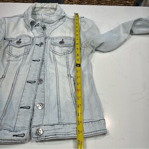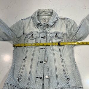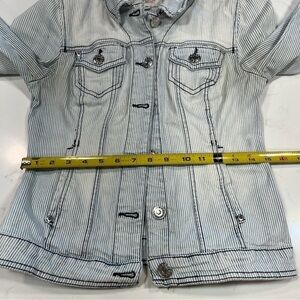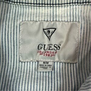Guess Retro Blue & White Pinstriped Denim Jacket Medium