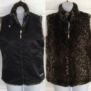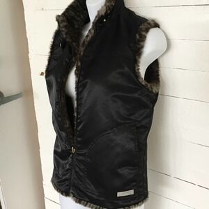 This is a fun 2 in 1 vest. Sleek looking on the black side and fun fur when flipped around. In like new condition. Non smoker home and I give bundle discounts.