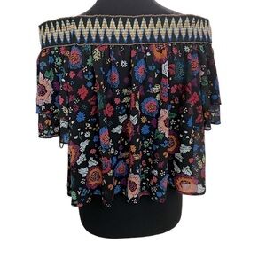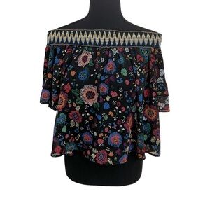Guess Rhett off-the-shoulder top in Frida floral jet black. Women's size small.