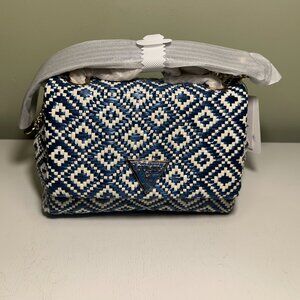 Realized in a lovely woven texture, this accessory by GUESS can be worn as a shoulder bag or a crossbody thanks to the convertible strap and features an iconic logo plaque at the front for a polished finish.