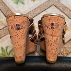 Guess Rose Gold Metallic Wedge Sandals 7.5 NEW