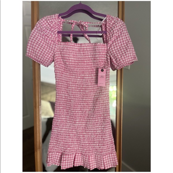 New with tags light pink and white Guess ruched mini dress. Cute for the summer