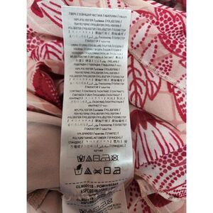 Guess Ruffle Lace Up Blouse Bodysuit Women's MEDIUM Pink White Floral V-Neck NEW