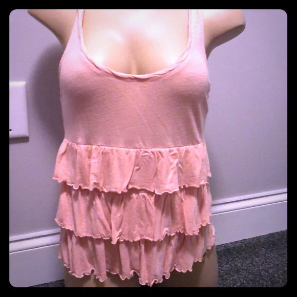 Super cute ruffled tank. Racer back style straps on the back , baby pink color , very feminine and pretty.