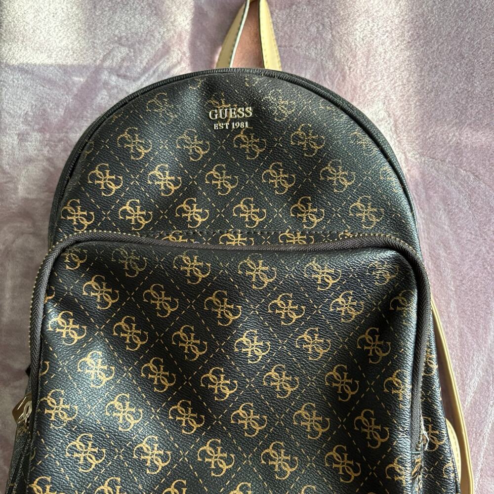The Guess Rylan Backpack is used and needs some love. Ideally the buyer is a seamstress or can take it somewhere to fix the straps. The printing at the top is a little faded. Everything else is good.