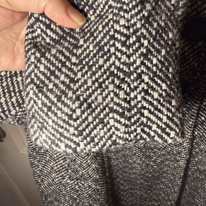 Style keywords: wool, pea coat, asymmetric, tweed, black, white, dressy, collar, collared, swing, trapeze, professional, business casual, work, office, lined, double breasted, tweed, herringbone, country house, feminine
