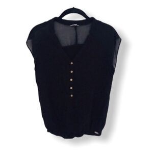 Guess black blouse that is semi-sheer on the top portion.  Button closure on front.