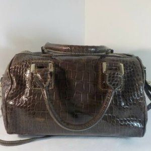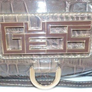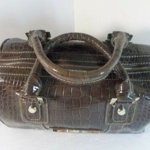 Guess Satchel Handbag W/Shoulder Strap in High Gloss Brown Faux Crocodile Skin