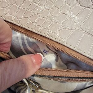 Pre owned in great like new condition. There is a mark on the inside of the inside zippered pocket. see picture