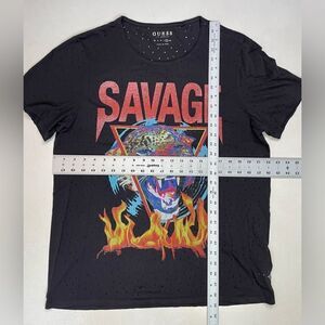Guess Savage Graphic T-shirt Men Slim Fit XL Black Distressed