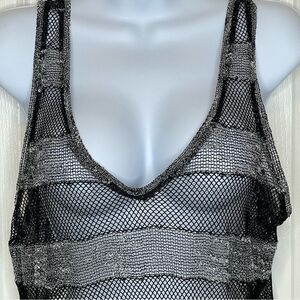 Guess See Through Mesh Sleeveless Striped Shirt Black and Gray Size Large