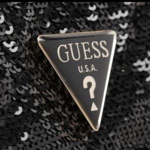 Guess Cessily Convertible Crossbody. Sequin quilted chain shoulder bag with brand metal hardware. Magnetic closure. Lined interior. Three slot pockets. one zip pocket. rivets on bottom