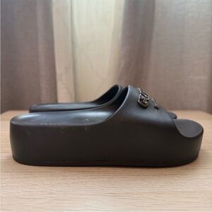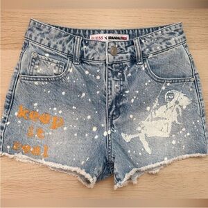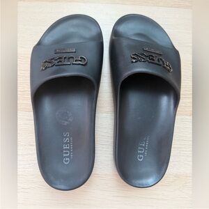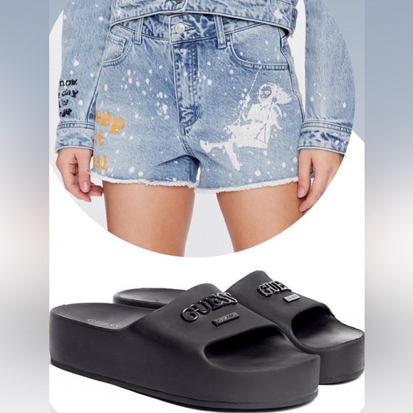 Guess shorts and matching flip-flops.