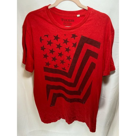 Guess Shirt Adult Extra Large Red Black Stars and Stripes Tee Mens