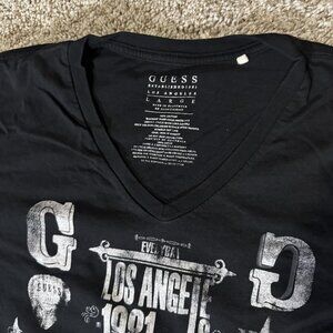 Guess Shirt Mens Large Black V-Neck Graphic Los Angeles 1981 Infamous Wanted Tee