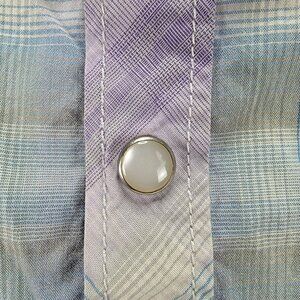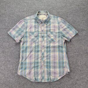 Guess Shirt Mens Medium Purple Blue Plaid Short Sleeve Western Pearl Snap Rodeo
